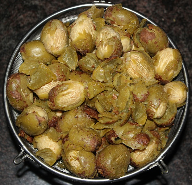 ಬೇಶಿದ ಅಂಬಟೆಯ ಉಪ್ಪು ನೀರಿಂದ ತೆಗದು ಒಂದು ಒಣಕ್ಕು ವಸ್ತ್ರಲ್ಲಿ ಹರಗಿ ಮಡುಗಿ.