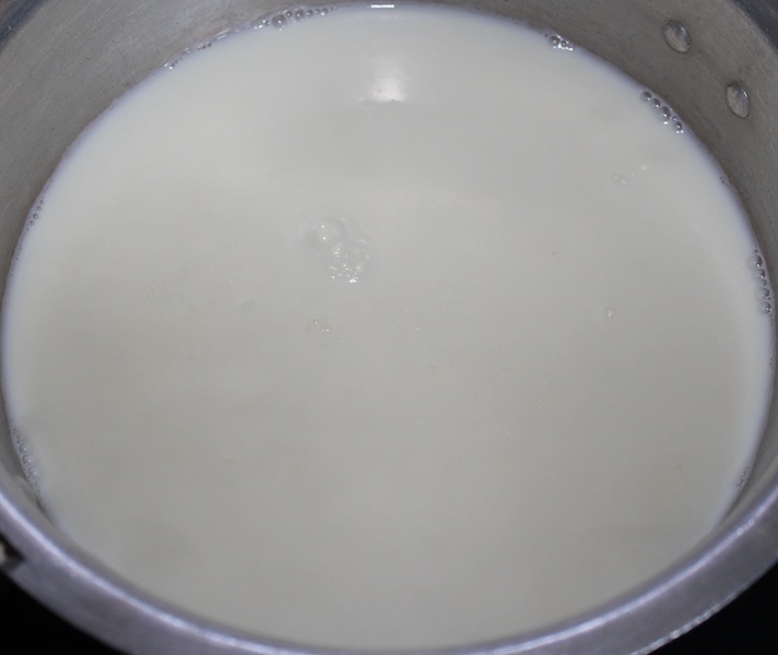 ಒಳುದ ಹಾಲಿನ ದಪ್ಪ ತಳದ ಪಾತ್ರಲ್ಲಿ ಹಾಕಿ ಕೊದುಶಿ. ಅದರ ಸಣ್ಣ/ಹದ ಕಿಚ್ಚಿಲ್ಲಿ ಸಾಧಾರಣ 10 ನಿಮಿಷ ಮಡುಗಿ, ಅಂಬಗಂಬಗ ತೊಳಸುತ್ತಾ ಇರಿ.