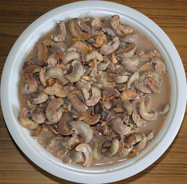 ಕೈಗೆ ರೆಜ್ಜ ಎಣ್ಣೆ ಪಸೆ ಮಾಡಿ, ಚೋರೆಯ ಉದ್ದಕೆ ಎರಡು ಭಾಗ ಮಾಡಿ. ಒಂದು ಕತ್ತಿ/ಪೀಶಕತ್ತಿ ಉಪಯೋಗುಸಿ ಬೀಜದ ಬೊಂಡಿನ ಎಳಕ್ಕುಸಿ.