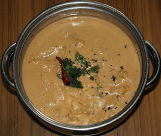 ಮಿಕ್ಸಿಲಿ/ಗ್ರೈಂಡರಿಲ್ಲಿ ಕಾಯಿಯ ಹಾಕಿ, ಬೇಕಾಸ್ಟು ನೀರು ಹಾಕಿ ಕಡೆರಿ. ಅದು ನೊಂಪಪ್ಪಲಪ್ಪಗ ಅದಕ್ಕೆ ಜೀರಿಗೆ ಹಾಕಿ 2-3 ನಿಮಿಷ ಕಡೆರಿ. ಇದರ ಬೇಶಿದ ಬಾಗಕ್ಕೆ ಹಾಕಿ ತೊಳಸಿ, ಕೊದುಶೆಕ್ಕು. (ಉಪ್ಪು, ನೀರು ಬೇಕಾದರೆ ಹಾಕಿ.)
