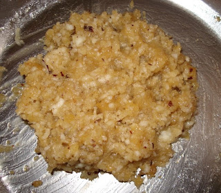 ಬೆಲ್ಲವ ಕೆರಸಿ, ಕಾಯಿ ಸುಳಿಗೆ ಸೇರ್ಸಿ ಲಾಯಿಕ ಬೆರುಸಿ ಮಡುಗಿ.